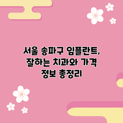 서울 송파구에는 여러 임플란트 전문 치과가 있어요. 그 중 추천할 만한 치과는 다음과 같아요.