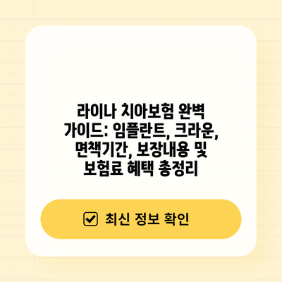 치아 건강은 우리의 삶의 질에 큰 영향을 미쳐요. 다치거나 아프면 일상생활에도 큰 지장을 주기 때문에, 치과 치료에 대한 준비는 필수적이에요. 그렇다면 치과 치료비를 어떻게 부담 없이 해결할 수 있을까요? 바로 치아보험이 그 답이에요! 이번 포스트에서는 라이나 치아보험의 임플란트, 크라운, 면책기간, 보장내용 및 보험료 혜택에 대해 자세히 알아볼게요.
