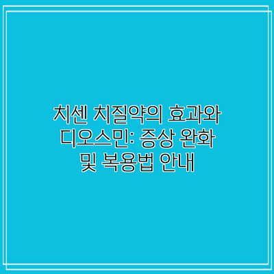 치센 치질약은 효과적인 치질 치료제로서, 혈관 강화와 염증 감소에 중요한 역할을 하고 있어요. 이를 통해 일상생활에서의 불편함을 덜어줄 수 있으며, 디오스민이라는 주성분이 그 효과를 뒷받침하고 있어요.